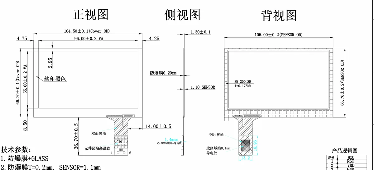विस्फोट रोधी फिल्म: 0.20 मिमी + सेंसर: 1.10 मिमी