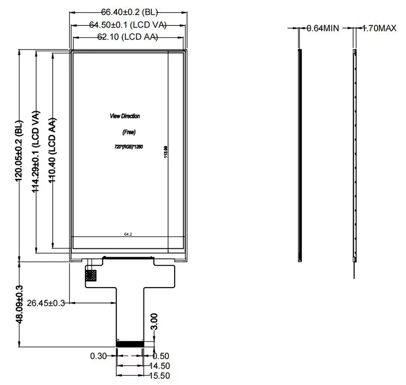 हमारे 5.0 उच्च चमक IPS TFT कैपेसिटिव टच स्क्रीन मॉड्यूल के साथ अपने डिवाइस के दृश्य प्रभाव को ऊंचा करें: यह स्मार्ट उपकरणों, पहनने वाले या ऑटोमोटिव ऐप्स के लिए आदर्श है, क्योंकि इसका 720x1920 रिज़ॉल्यूशन IPS पूर्ण देखने के कोणों (178 °) से मिलता है, 300cd/mic चमक के साथ, यहां तक ​​कि प्रत्यक्ष सूरज की रोशनी में भी दिखाई देता है; 1.85 मिमी प्रोफ़ाइल और कॉम्पैक्ट 66.40x120.05x1.85 मिमी।