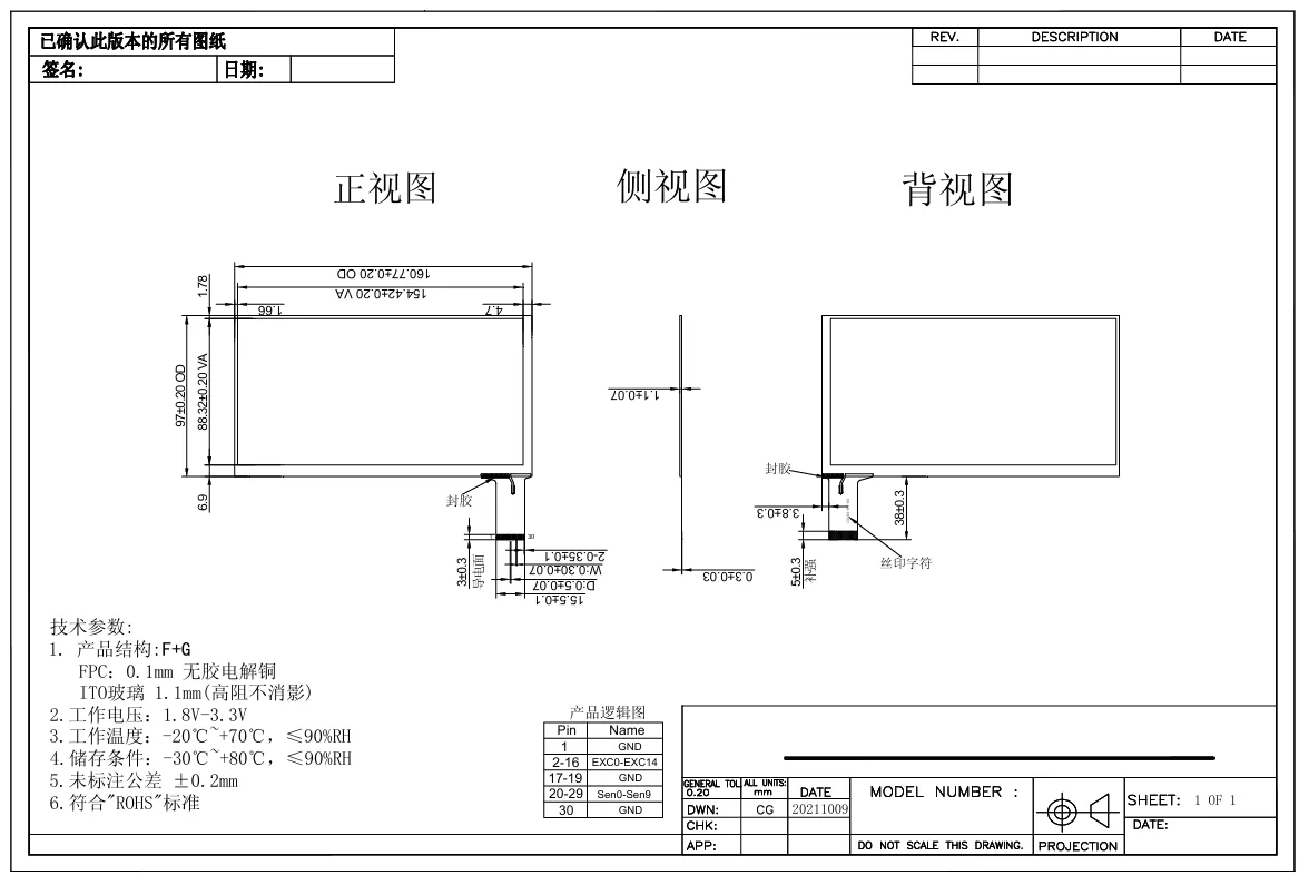 97.00 × 160.77 × 1.10 मिमी (सेंसर रूपरेखा; सहनशीलता: ±0.20 मिमी)